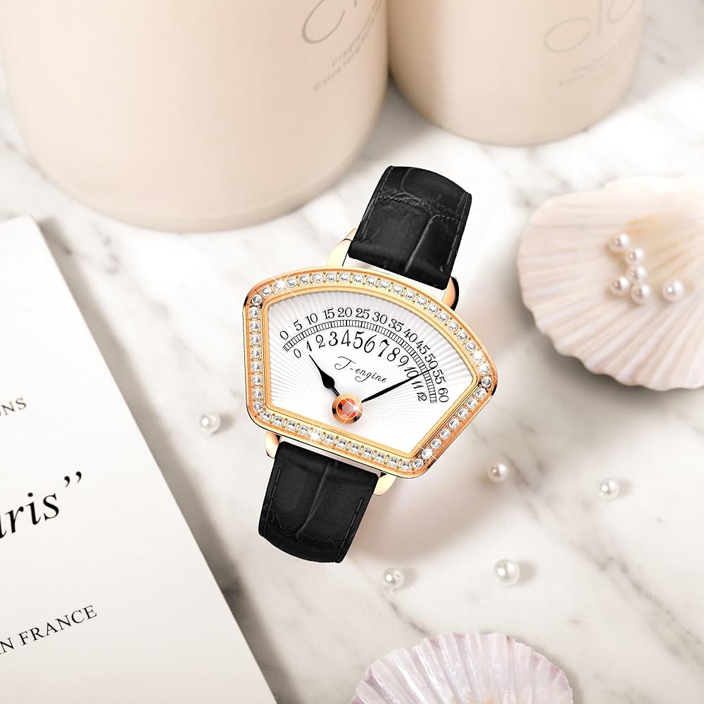 - Lustrous Durability: Embrace the perfect mix of strength and exquisite elegance with our retrograde elite women’s watches crafted in stainless steel and paired with a genuine leather watch strap. Embellished with a dazzling diamond, diamonds are made of zircon materialthis analogue watch captures the shimmer and enchantment of top-tier diamonds